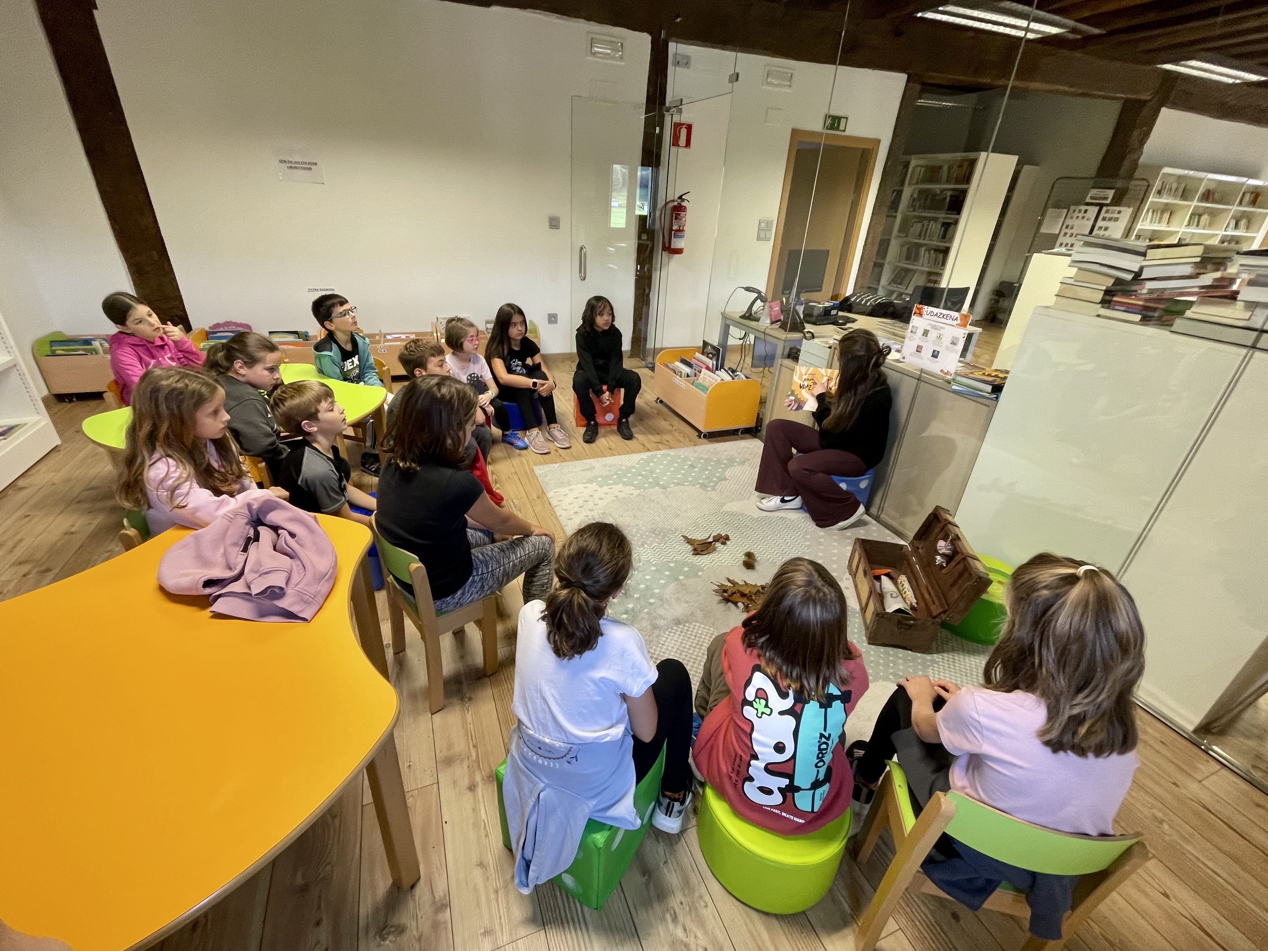 Urrian zehar, J.A. MUÑAGORRI eskolako ikasleak, Berastegiko Udal liburutegira joan gara. Bertan, Iratik, ”Amona Tomaxa udazkenean” ipuina kontatu digu. Udazkeneko fruituak eta hostoak ere erakutsi dizkigu. Gero, papertxo batean idatzi behar izan dugu, guri “UDAZKEN” hitza entzuterakoan, zer datorkigun burura: hostoak, gaztainak, kolore marroia, orbela,… eta horien inguruan hitz egiten egon gara. Asmakizun bat ere bota digu: