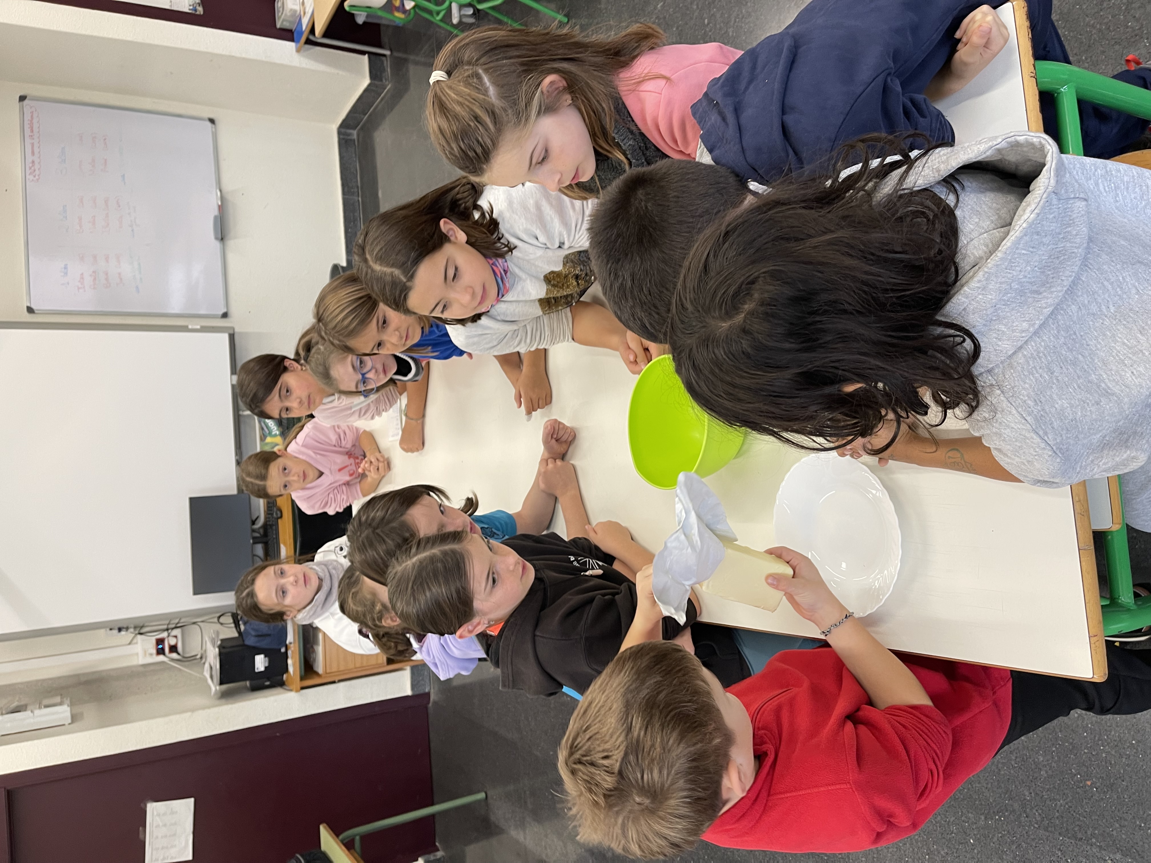 Ikasturte honetan, gelan sukaldatu nahi genuela, esan genuen. Gelakide batek gailetak etxean egindakoak egun batean hamaiketakorako ekarri zituen eta gelan egitea proposatu zuen. Hurrengo egunean, errezeta idatzita ekarri zuen eta gelan egiteko aproposa iruditu zitzaigun.