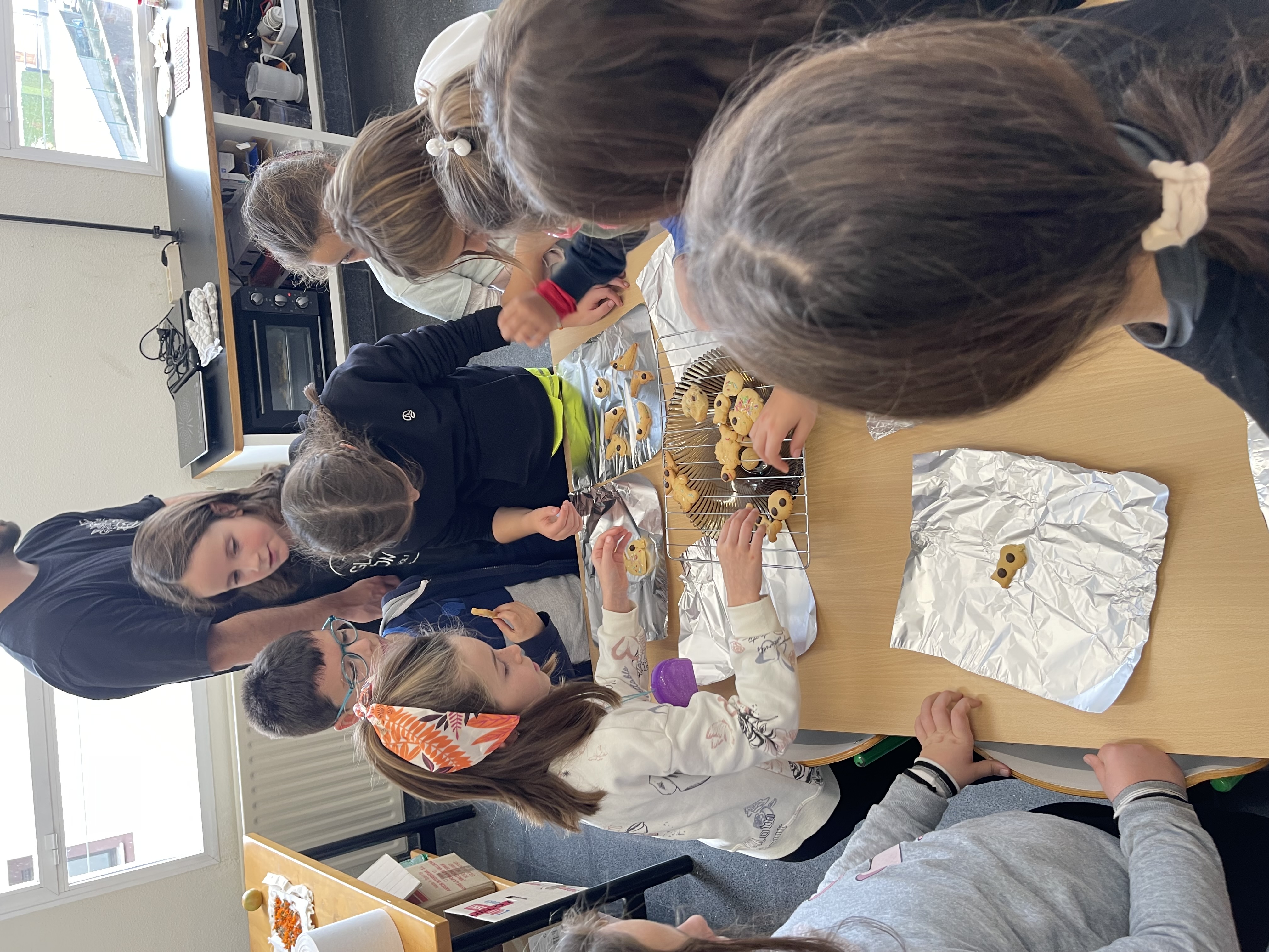 Bukatzeko, labean sartu eta bitartean, zikindu genuena garbitzeko aprobetxatu genuen. Gailetak labetik atera ondoren, banatzeko ordua iritsi zen: batzuk irakasleentzat, beste batzuk etorri ez zen ikasle batentzat, beste bat hamaiketakorako eta besteak, etxekoentzat, beraiek probatu ahal izateko. Ederrak zeuden!!