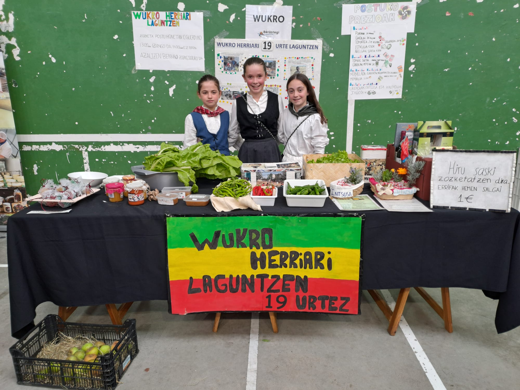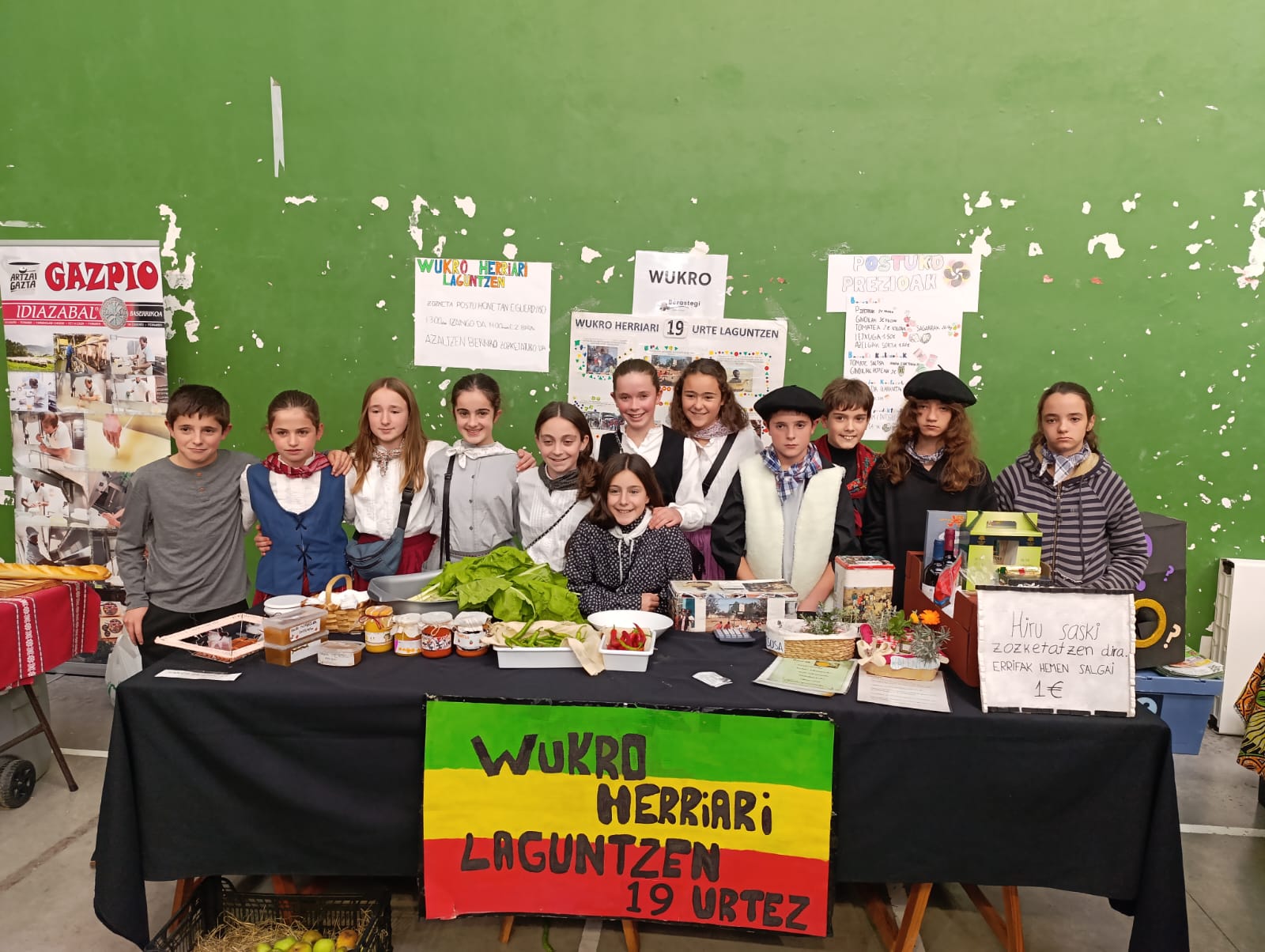 Ondoren, urtero herrian egiten den Kultur Asteko azokan, hiru saski zozketatzen hasi ginen. Hiru saski horiek ikasle, irakasle eta gurasoen aportazioekin (tartak, mermeladak, gazta, babarrunak, eskulanak, …) eta Gazta Lehiaketako hiru gazta irabazleekin osatzen dira.